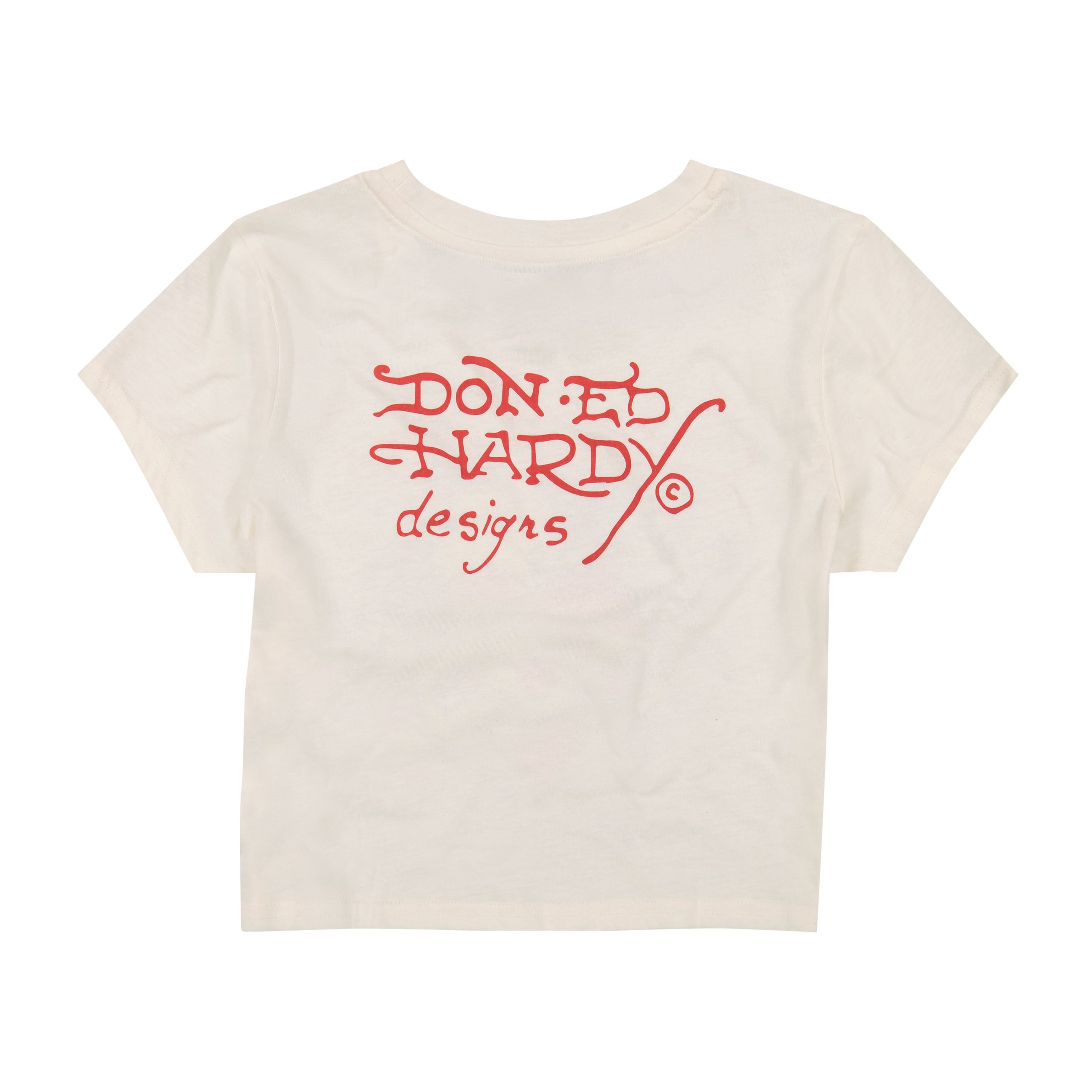Our classic baby tee silhouette featuring an archival cross heart graphic and red Ed Hardy logos. Constructed from a soft cotton blend.?