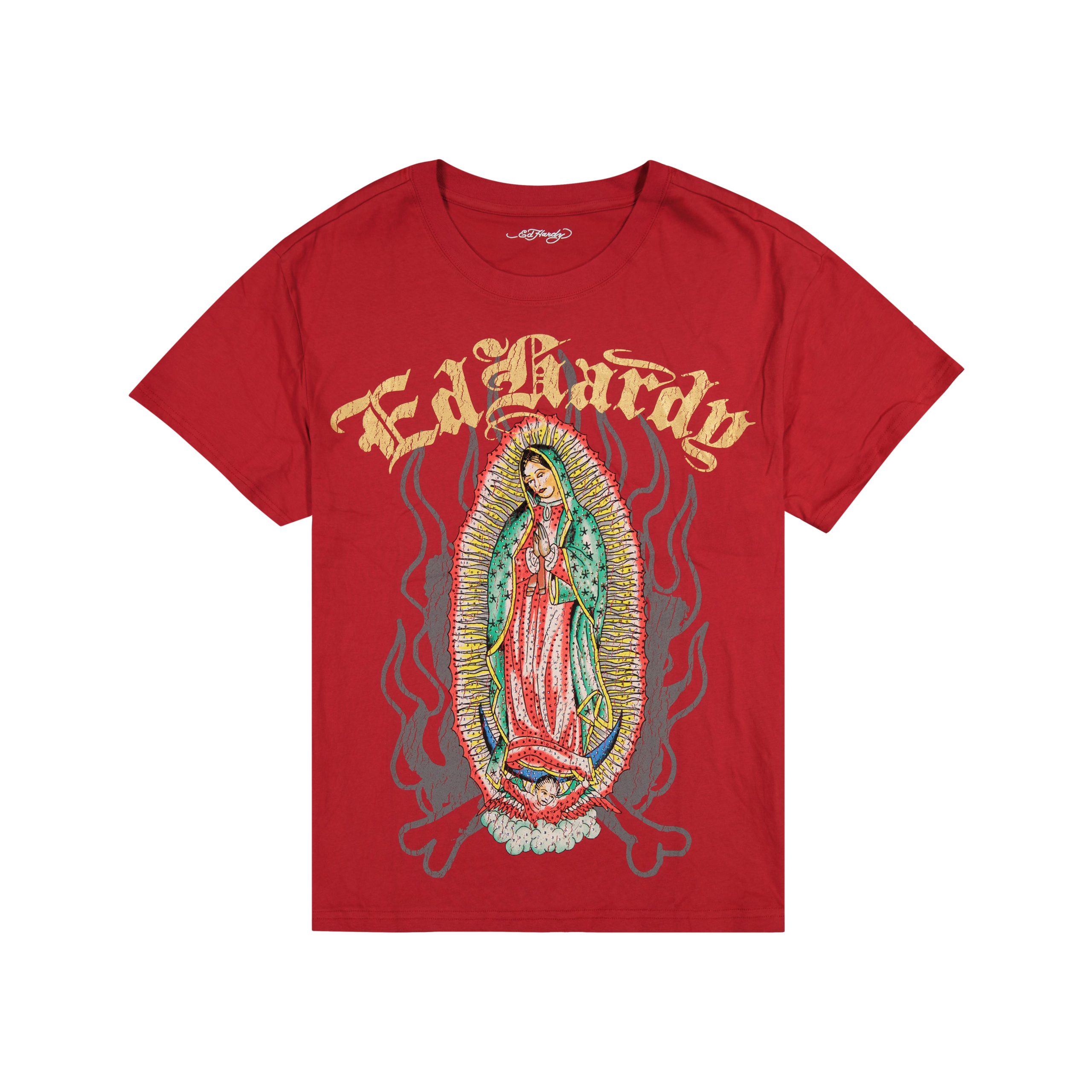 This boxy tee is cut from a vintage fade cotton for the perfect retro. oversized feel. Features layered archival Ed Hardy graphics and complete with a signature logo.