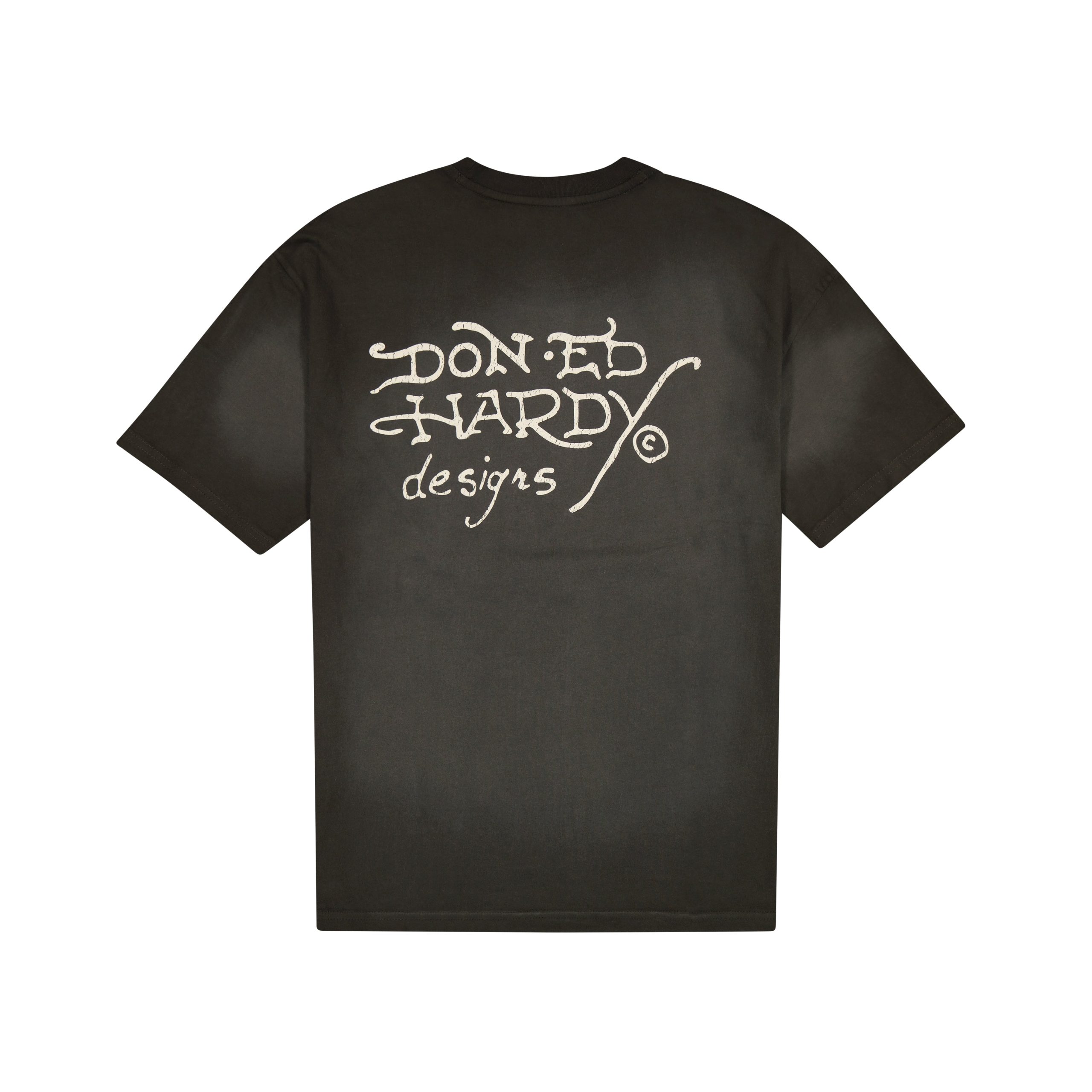 This boxy tee is cut from a vintage fade cotton for the perfect retro. oversized feel. Features layered archival Ed Hardy graphics and complete with a signature logo.