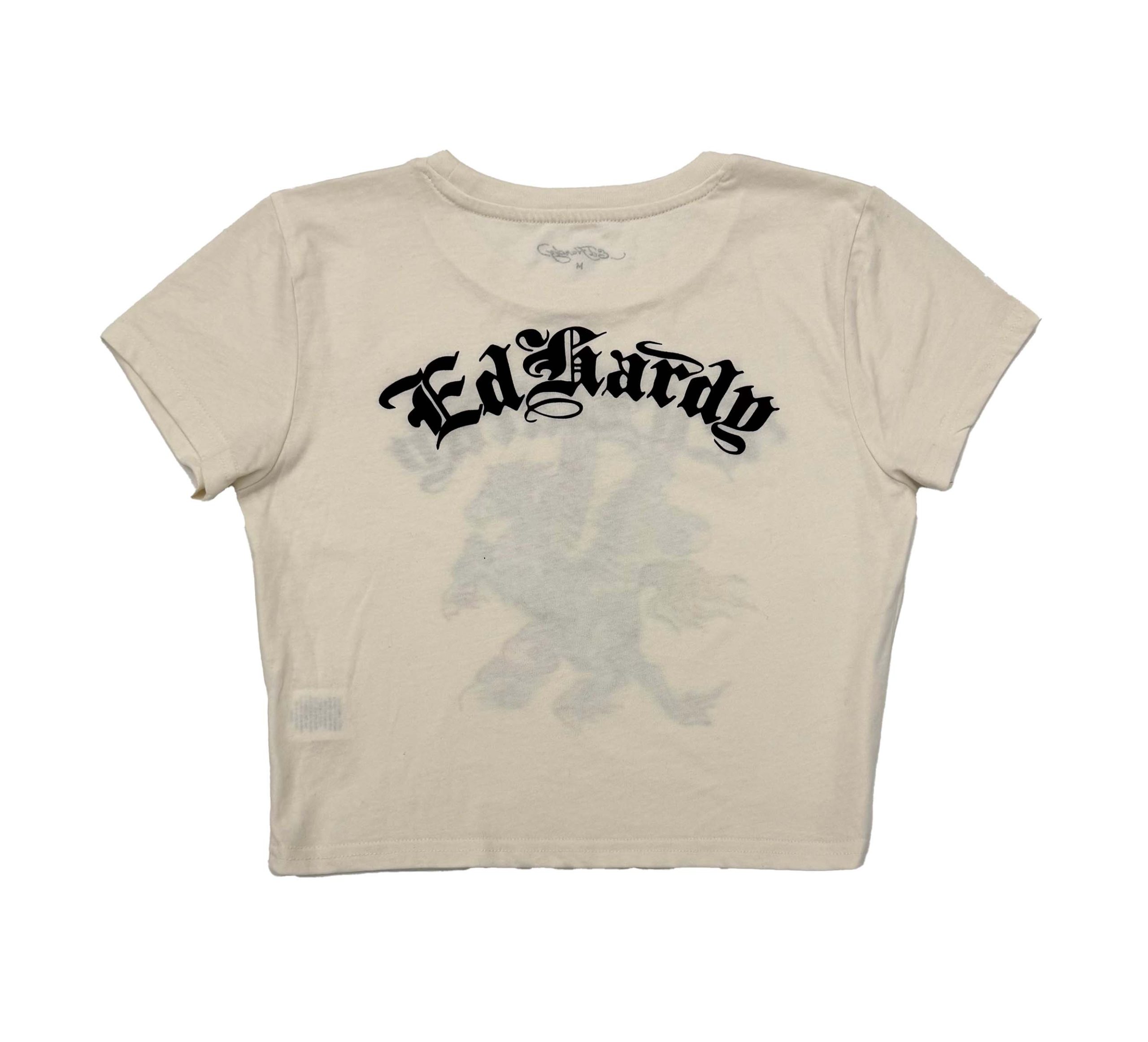Our classic baby tee silhouette featuring a Pegasus graphic and a signature Ed Hardy logo. Constructed from a soft cotton blend.